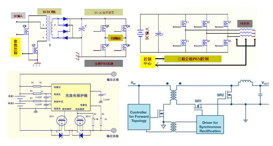 (1)儲能電源/太陽能控制器/逆變器/UPS等電源的DC-DC升壓結構使用推免結構或者半橋、全橋結構。
