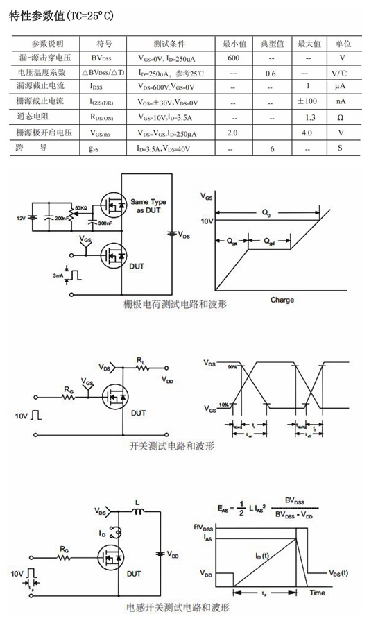 • 10A電流的MOS管可替代FQP4N60型號參數,應用在AC-DC開關電源