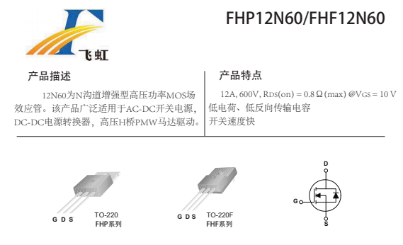 FHP12N60的主要封裝形式是TO-220、TO-220F,腳位排列位GDS。這款12N60場效應(yīng)管產(chǎn)品具體參數(shù):Vgs(±V):30;VTH(V):2-4;ID(A):12;BVdss(V):600。RDS (on) = 0。8mΩ(typ)@V GS =10V,低電荷、低反向傳輸電容開關(guān)速度快。